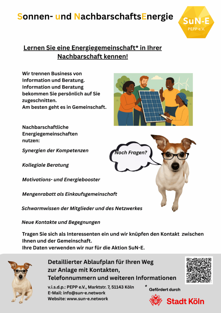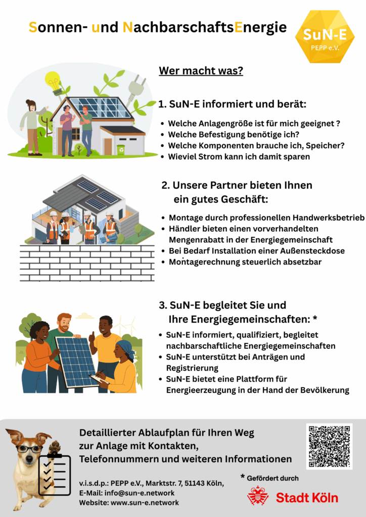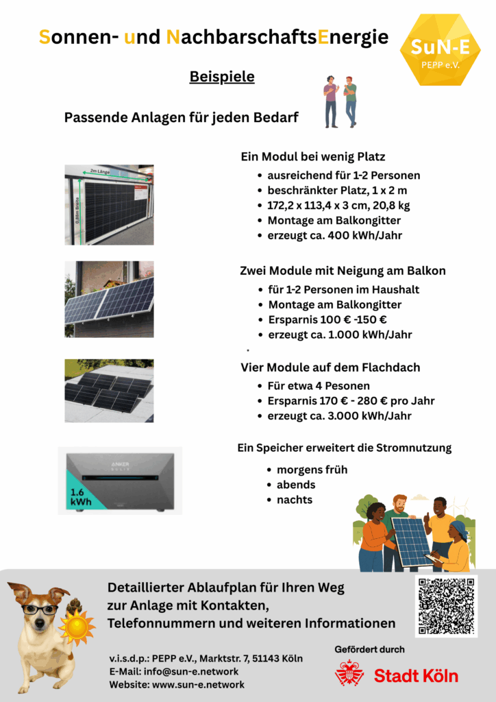 Der Verein PEPP e.V. erleichtert Kölner Haushalten an der Energiewende aktiv mitzuwirken durch gemeinschaftlichen Erwerb von Steckersolargeräten und Teilnahme an Energiegemeinschaften: